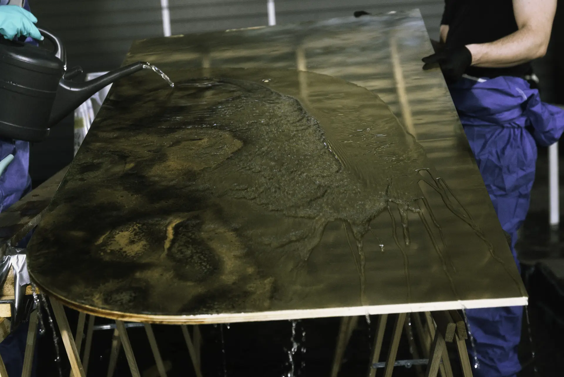 DescriptionCustom patinated brass panels were made to clad the reception area of the Roosevelt Office Building, covering approximately 60 square meters. The surfaces are divided into three parts and are featured across the reception desk and two ceiling elements. The building’s entrance area underwent a complete renovation, during which the interior was entirely reimagined. As part of this transformation, brass with a dark, brownish-black patina was selected to bring a refined and timeless character to the space.
